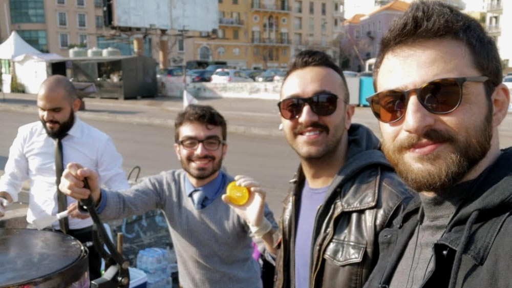 The duo headed down to Beirut’s Martyrs’ Square – the epicentre of the protest movement – with a juicer and a traditional Lebanese saj, a large, gas-fired stove used to make flatbread with cheese or zaatar.