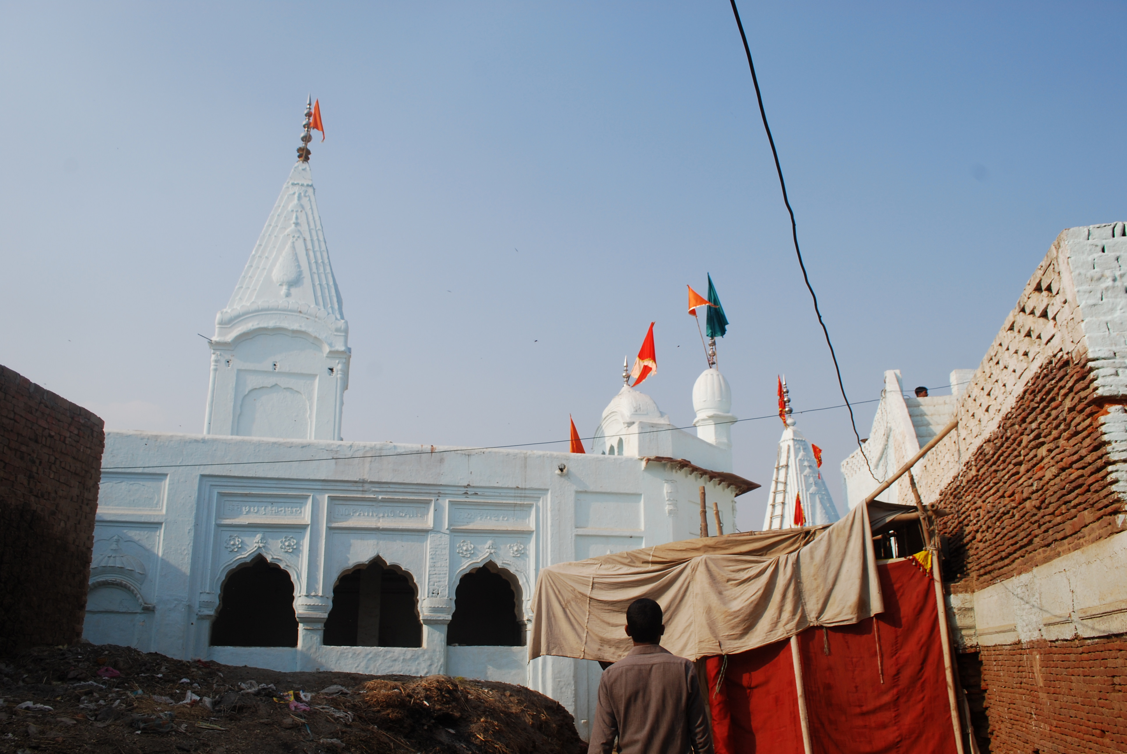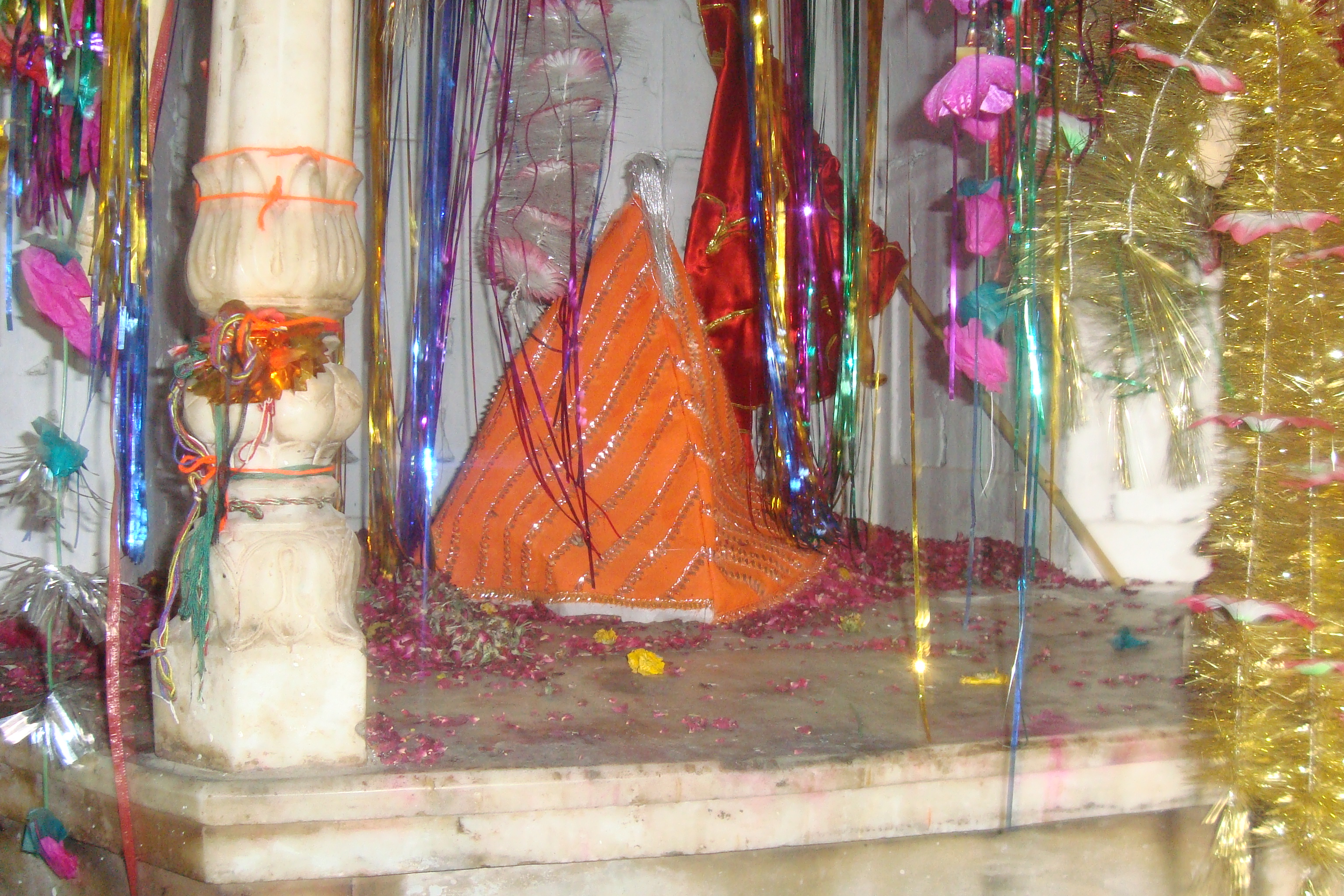 Next to the building containing the sacred space is a Hindu temple, dedicated to the goddess Kali. Adjacent to these two buildings are the remains of a large, sacred pool. There are several other smaller temples within this larger complex, scattered all over the village.