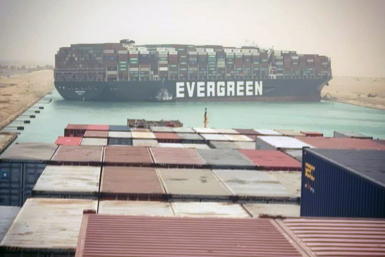 200,000-tonne Ever Given en route from the Red Sea ran aground after the ship suffered a blackout.