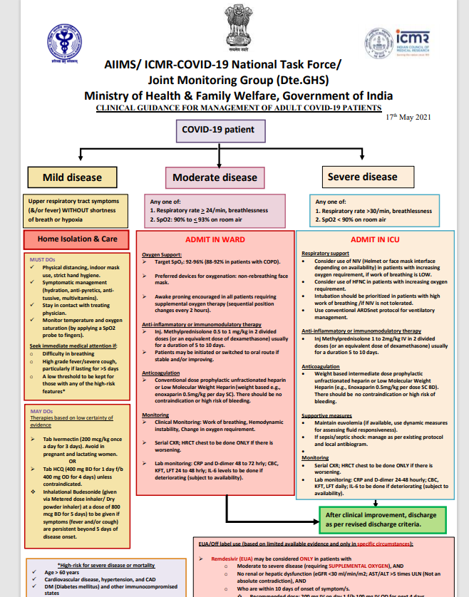 Steroids and anticoagulants were advised for moderate cases, and immediate oxygen therapy, intubation, ventilation and immune-modulators were added for severe cases.