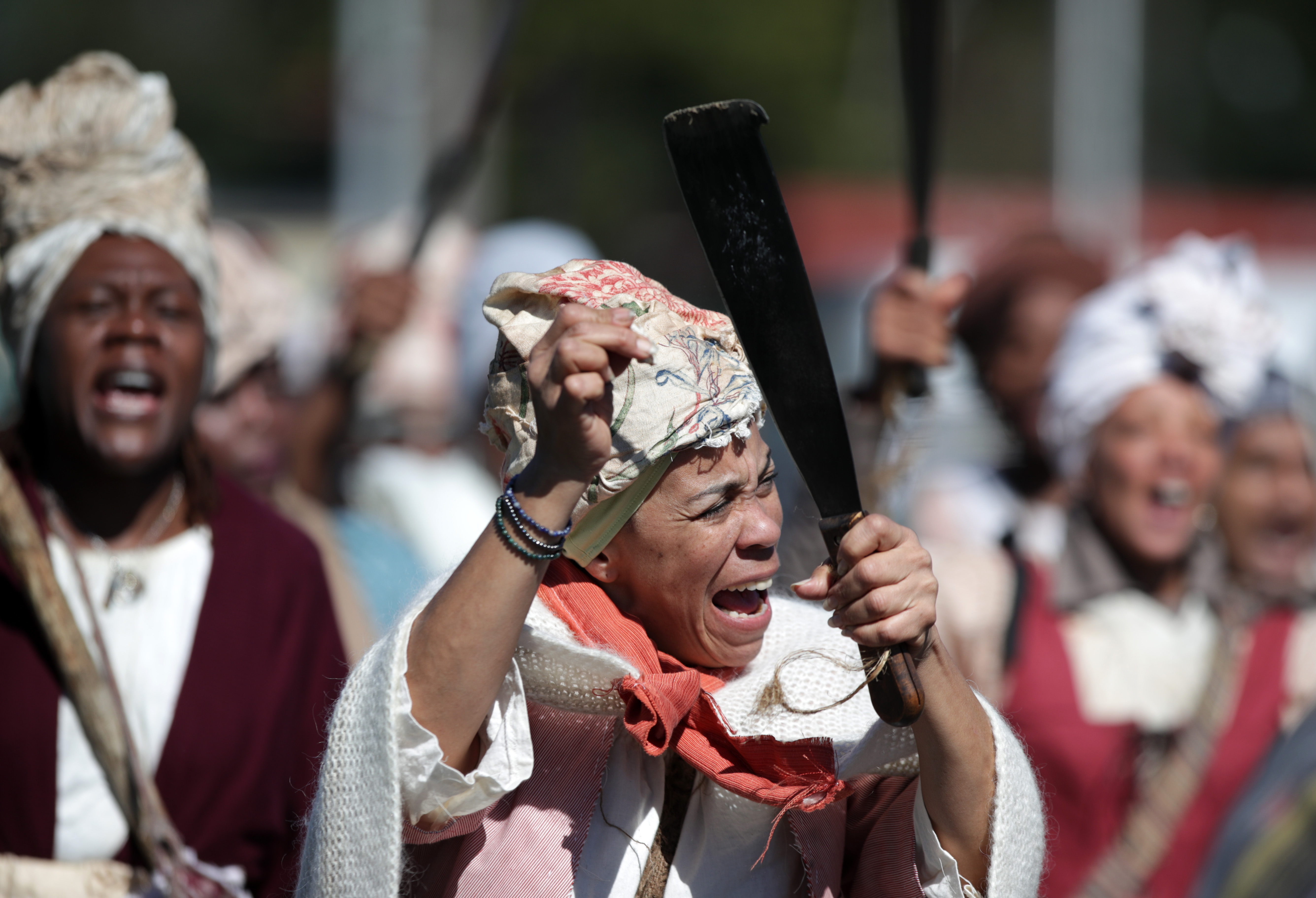 A reenactment of the 1811 German Coast Uprising brought the past to life this week, as participants retraced a two-day, 42-kilometer march to New Orleans. Armed with machetes and dressed in period costumes, people beat drums and chanted for their rights as they walked past the oil refineries and trailer parks that have replaced the sugar plantations of the nineteenth century.