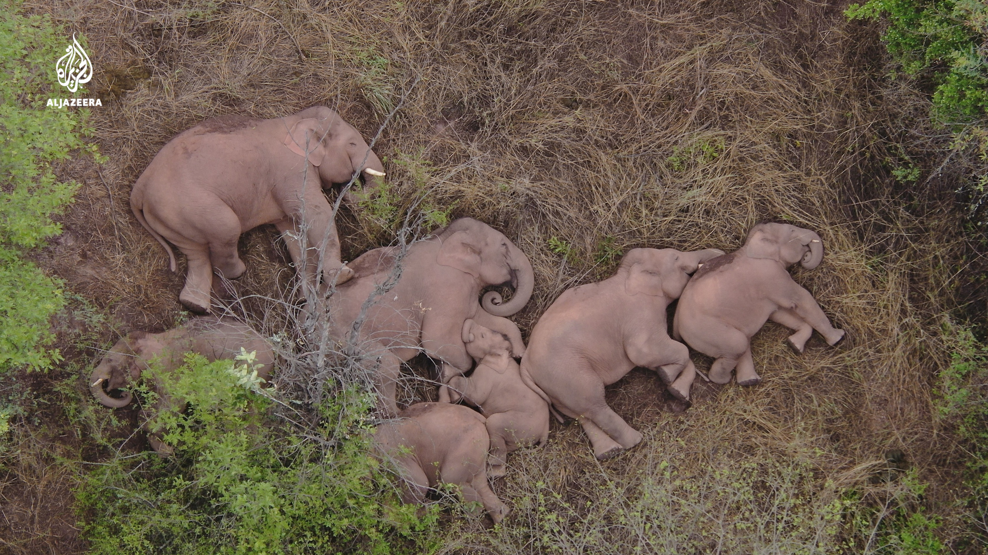 China’s wandering elephants stop to snooze during 500km journey